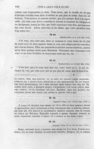 Письма Великого Князя Павла Петровича в последствии Императора Павла I к Барону Карлу Ивановичу Сакену, Посланнику при Датском дворе. Царское Село, 12-го (23-го) мая 1783 г.