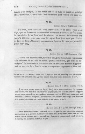 Письма Великого Князя Павла Петровича в последствии Императора Павла I к Барону Карлу Ивановичу Сакену, Посланнику при Датском дворе. Царское Село, 9-го (20-го) августа 1783 г.
