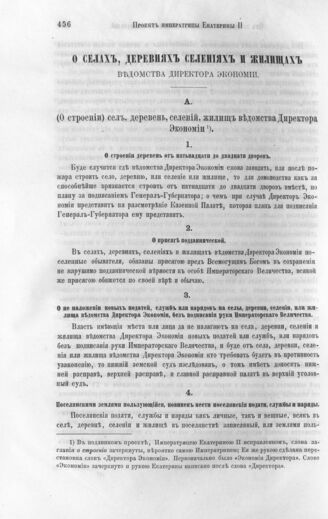 Проект Императрицы Екатерины II. О селах, деревнях, селениях и жилищах Ведомства Директора Экономии