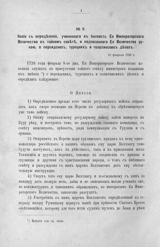 Копия с определения, учиненного в бытность Ее Императорского Величества в тайном совете, и подписанного Ее Величества рукою, о персидских, турецких и голштинских делах. 10 февраля 1726 г.