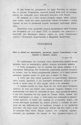 Приложение к журналу Верховного тайного совета от 18 марта 1726 г. Копия с мнения его королевского высочества герцога Голштинского, о персидских и турецких делах. 18 марта 1726 г.