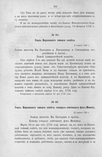 Указ Верховного тайного совета генерал-лейтенанту фон-Миниху. 12 апреля 1726 г.