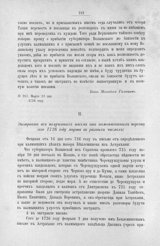 Приложение к протоколу Верховного тайного совета от 27 апреля 1726 г. Экстракт из полученных писем от нижеписанных персон сего 1726 году марта в разных числах