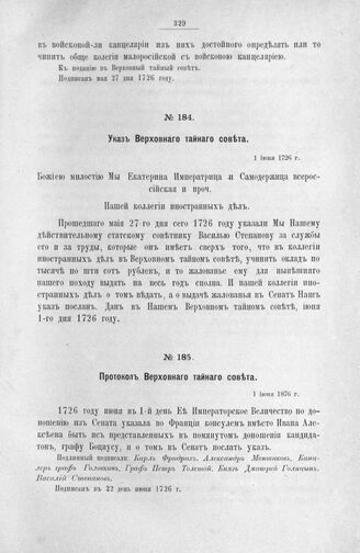 Указ Верховного тайного совета. 1 июня 1726 г.