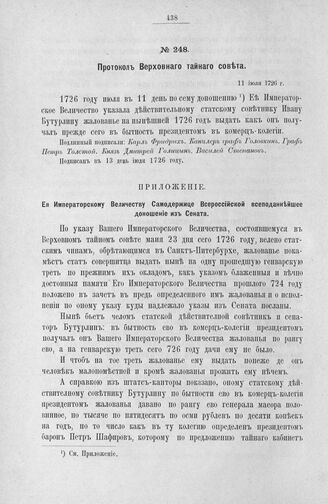 Приложение к протоколу Верховного тайного совета от 11 июля 1726 г. Ее Императорскому Величеству Самодержице Всероссийской всеподаннейшее доношение из Сената. 4 июля 1726 г. [2]
