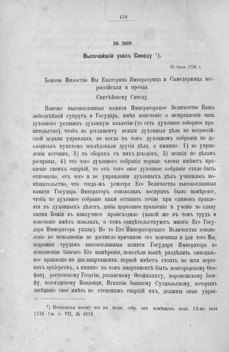 Высочайший указ Синоду. 15 июля 1726 г.