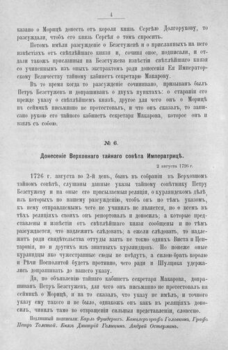 Донесение Верховного тайного совета Императрице. 2 августа 1726 г.