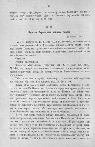 Журнал Верховного тайного совета. 15 августа 1726 г.