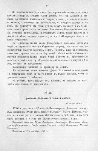 Протокол Верховного тайного совета. 27 августа 1726 г.