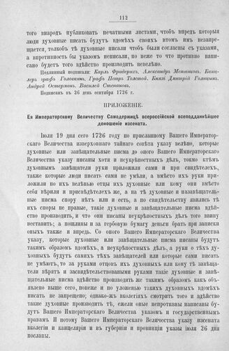 Приложение к протоколу Верховного тайного совета от 26 сентября 1726 г. Ее Императорскому Величеству Самодержице всероссийской всеподданнейшее доношение из Сената. 24 августа 1726 г.