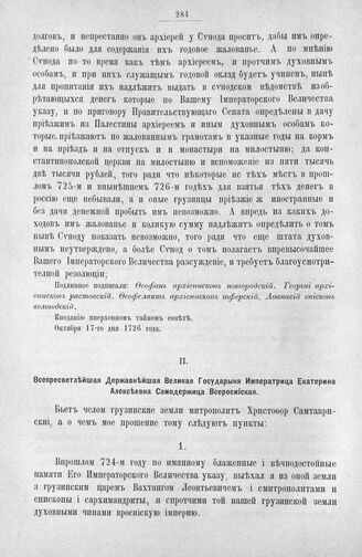 Приложение к протоколу Верховного тайного совета от 19 октября 1726 г. Всеподданнейшее прошение Христофора Митрополита Сантаврийского. Октябрь 1726 г.