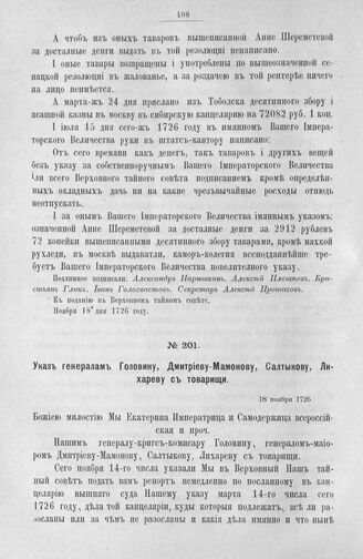 Указ генералам Головину, Дмитриеву-Мамонову, Салтыкову, Лихареву с товарищами. 18 ноября 1726 г.