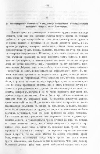 Приложение к протоколу Верховного тайного совета от 9 декабря 1726 г. Ее Императорскому Величеству Самодержице Всероссийской всеподданнейшее доношение генерала князя Долгорукова. Дербент, 22 октября 1726 г.