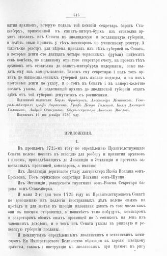 Приложение к протоколу Верховного тайного совета от 14 декабря 1726 г. Справка о посылке в Швецию коммисаров для приема дел. 1726 г.