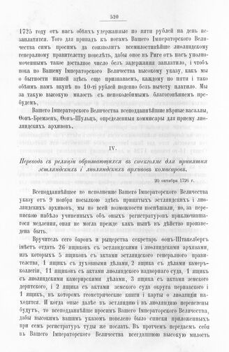 Приложение к протоколу Верховного тайного совета от 14 декабря 1726 г. Перевод с реляции обретающихся в Стокгольме для принятия эстляндских и лифляндских архивов коммисаров. 20 октября 1726 г.