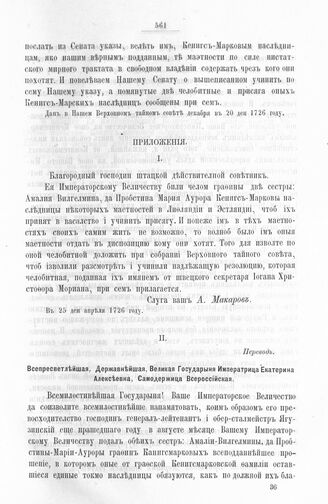 Приложение к указу Сенату от 20 декабря 1726 г. Письмо кабинет-секретаря Макарова действительному статскому советнику Степанову. 25 апреля 1726 г.