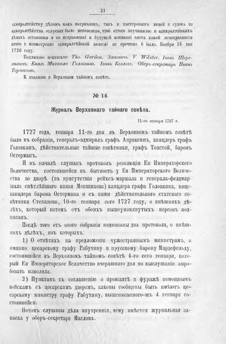 Журнал Верховного тайного совета. 11-го января 1727 г. [1]