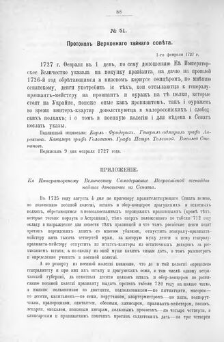Приложение к Протоколу Верховного тайного совета от 1-го февраля 1727 г. Всеподданнейшее донесение Сената, от 9-го декабря 1726 г.
