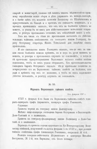 Журнал Верховного тайного совета. 6-го февраля 1727 г. [1]