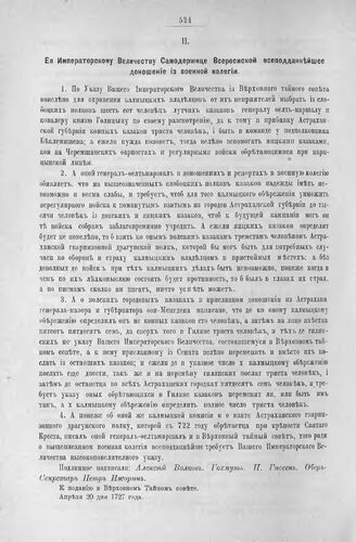 Приложение к Протоколу Верховного тайного совета от 15-го мая 1727 г. Всеподданнейшее донесение военной колегии. 20-го апреля 1727 г.