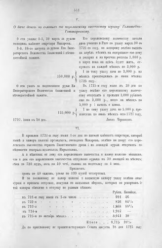 Приложение к Протоколу Верховного тайного совета от 19-го мая 1727 г. Справка об отпуске дров и фуража ко двору герцога. Июня 26-го 1727 г.