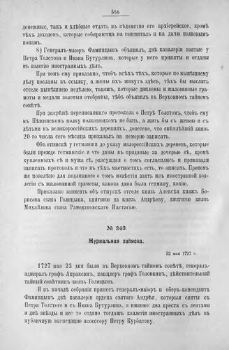 Сборник Императорского Русского Исторического Общества. Т. 63. Протоколы, журналы и указы Верховного Тайного Совета, 1726-1730 гг. Т. III. (Январь-Июнь 1727 г.). — СПб.: Тип. И.Н. Скороходова, 1888.