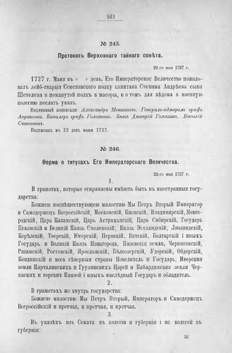 Форма о титулах Его Императорского Величества. 22-го мая 1727 г.