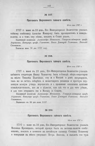 Сборник Императорского Русского Исторического Общества. Т. 63. Протоколы, журналы и указы Верховного Тайного Совета, 1726-1730 гг. Т. III. (Январь-Июнь 1727 г.). — СПб.: Тип. И.Н. Скороходова, 1888.