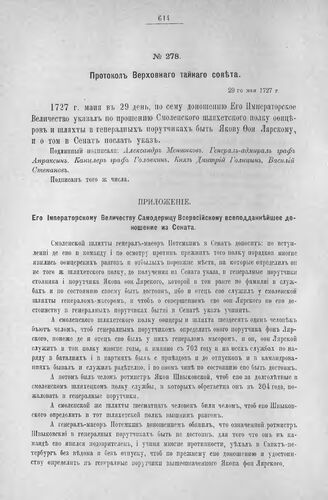 Приложение к Протоколу Верховного тайного совета от 29-го мая 1727 г. Всеподданнейшее донесение Сената. 23-го мая 1727 г.