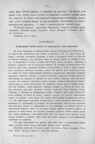 Приложение к Протоколу Верховного тайного совета от 29-го мая 1727 г. Донесение от учрежденного суда Верховному тайному совету. 24-го мая 1727 г.