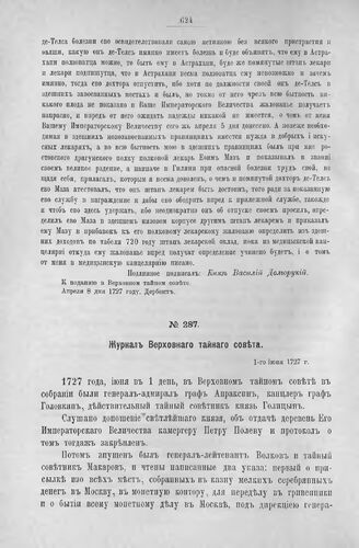 Журнал Верховного тайного совета. 1-го июня 1727 г.