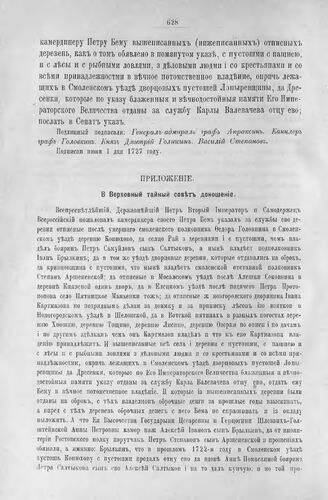 Приложение к Протоколу Верховного тайного совета от 1-го июня 1727 г. Донесение в Верховный тайный совет генералисимуса князя А. Д. Меншикова. Питергоф, 30-го мая 1727 г.