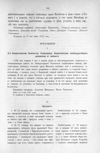 Приложение к Протоколу Верховного тайного совета от 12-го июня 1727 г. Всеподданнейшее донесение кабинета. 8-го июня 1727 г.