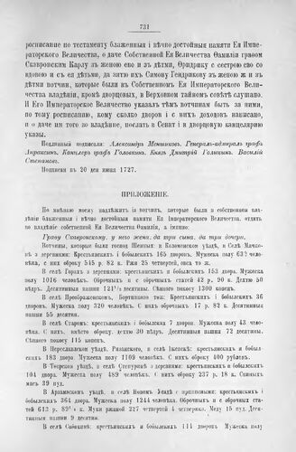 Приложение к Протоколу Верховного тайного совета от 13-го июня 1727 г. Наименование вотчин, поступающих во владение Скавронских и Гендриковых