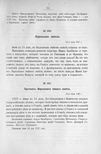 Журнальная записка. 15-го июня 1727 г.