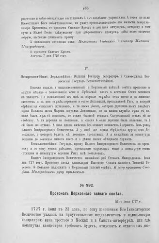 Приложение к Протоколу Верховного тайного совета от 23-го июня 1727 г. Всеподданнейшее прошение С. Милорадовича. Июнь 1727 г.