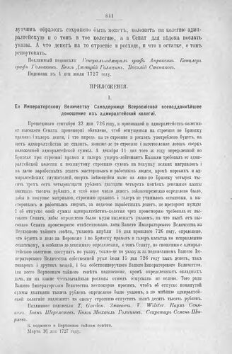 Приложение к Протоколу Верховного тайного совета от 30-го июня 1727 г. Всеподданнейшее донесение адмиралтейской коллегии. 16-го марта 1727 г.