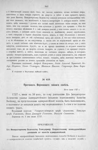 Приложение к Протоколу Верховного тайного совета от 30-го июня 1727 г. Всеподданнейшее донесение адмиралтейской коллегии. 24-го мая 1727 г.