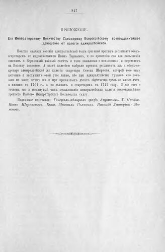 Приложение к Протоколу Верховного тайного совета от 30-го июня 1727 г. Всеподданнейшее донесение адмиралтейской коллегии