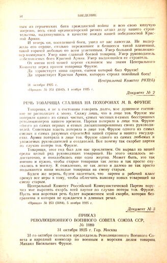 Речь товарища Сталина на похоронах М.В. Фрунзе