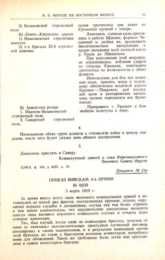 Приказ войскам 4-й армии. № 92/39. 3 марта 1919 г. // ЦАКА, ф. 254, оп. 5, д. 24, лл. 24—25.