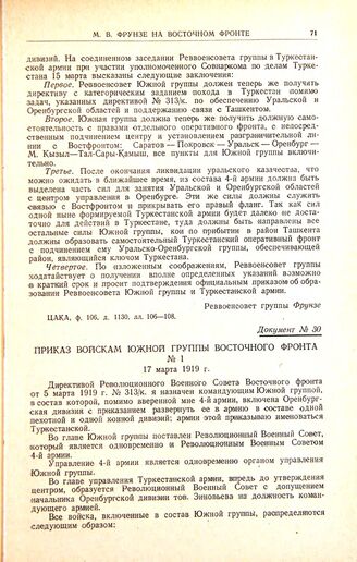 Приказ войскам южной группы Восточного фронта. № 1. 17 марта 1919 г. // ЦАКА, ф. 254, оп. 4, д. 73, лл. 42—43.