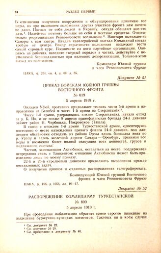 Главная М.В. Фрунзе на фронтах гражданской войны Документы Распоряжение командарму Туркестанской. № 800. 5 апреля 1919 г.