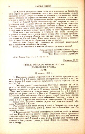 Главная М.В. Фрунзе на фронтах гражданской войны Документы Приказ войскам южной группы Восточного фронта. № 021. 10 апреля 191...