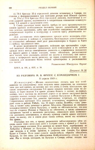 Из разговора М.В. Фрунзе с командармом 1. 11 апреля 1919 г. // ЦАКА, ф. 254, оп. 4, л. 125, лл. 116—119.