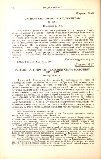 Разговор М.В. Фрунзе с командующим Восточным фронтом. 16 апреля 1919 г. // ЦАКА, ф. 106, д. 1134, лл. 79—85.