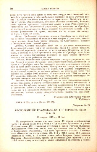 Распоряжение командармам 1 и Туркестанской. № 01164. 22 апреля 1919 г., 21 час // ЦАКА, ф. 254, оп. 4, д. 88, л. 393.