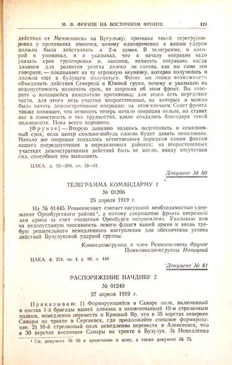 Телеграмма командарму 1. № 01206. 25 апреля 1919 г. // ЦАКА, ф. 254, оп. 4, д. 88, л. 448.