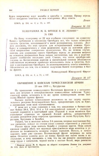 Обращение к войскам Туркестанской армии. 23 мая 1919 г., Бугуруслан // ЦАКА, ф. 110, оп. 4, д. 275, лл. 286—287.