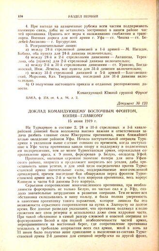 Доклад командующему Восточным фронтом, копия — главкому. 15 июня 1919 г. // ЦАКА, ф. 254, оп. 4, д. 96, лл. 116—120.